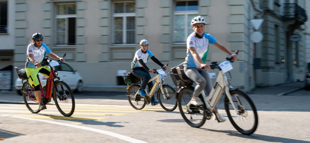 Mitarbeitende der ganzen Insel Gruppe treten in die Pedale